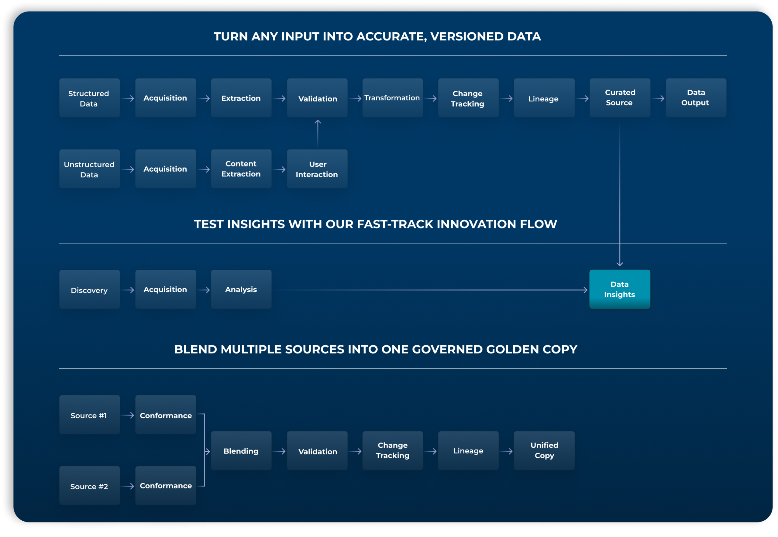 The Managed Smart Data platform takes disparate data sets and transforms them into one unified, golden copy.